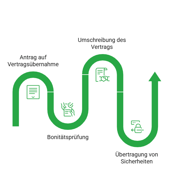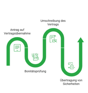 - Bei der Bank wird ein Antrag auf Vertragsübernahme gestellt.