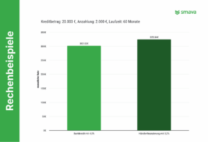 - Kreditbetrag: abhängig vom Kaufpreis (abzüglich Anzahlung, falls vorhanden)