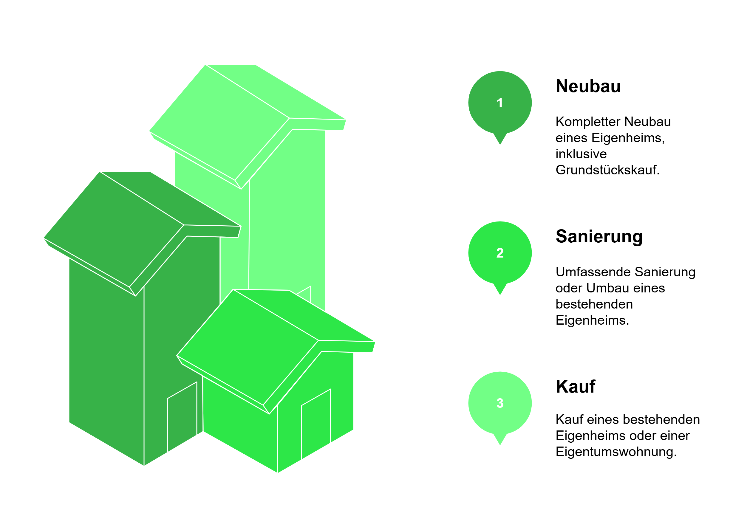 Ein Baudarlehen ist ein zweckgebundener Kredit – häufig über sechsstellige Summen – der primär für Wohnimmobilien gedacht ist. Seine wichtigsten Einsatzfelder im Privatbereich sind die Folgenden: