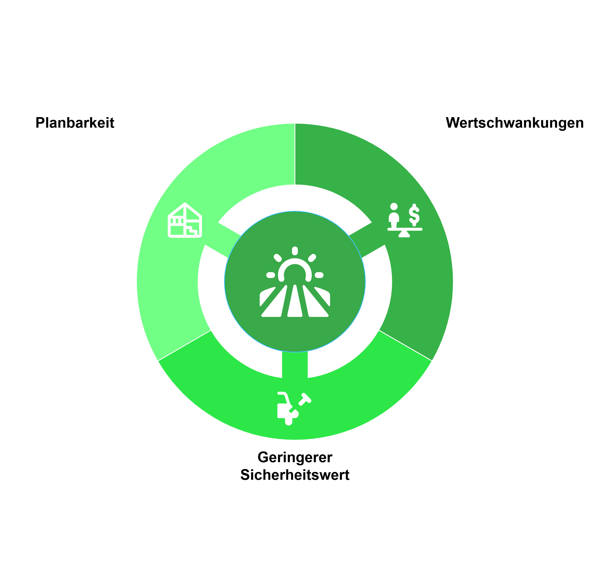 - Ohne Bebauung können die Wertschwankungen u.a. durch Spekulation bedeutend größer sein.