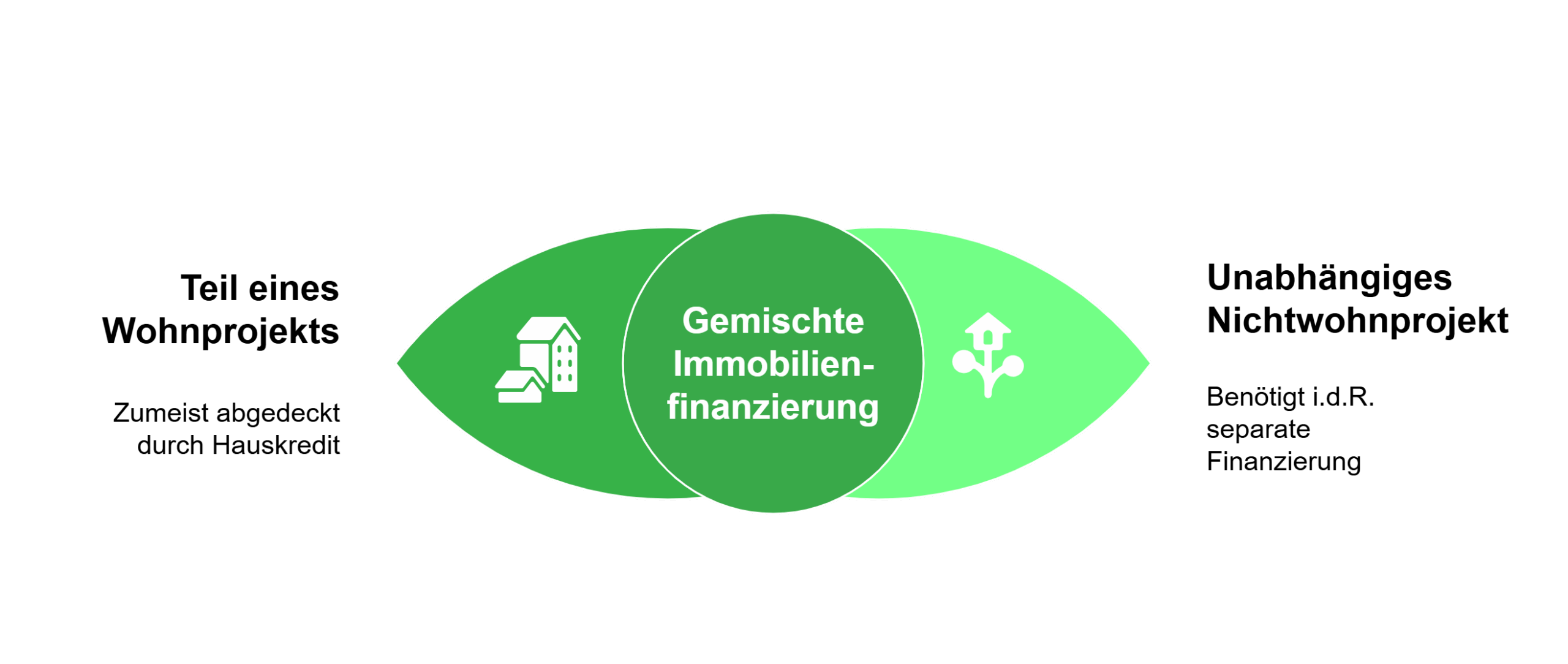 Ist das Nichtwohngebäude ein unabhängiges Projekt, kommt es stärker auf den Finanzierer an und mitunter darauf, ob Sie eine (stets deutlich wertvollere) Wohnimmobilie als Sicherheit einbringen können.