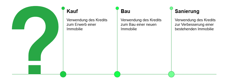 Ein Immobilienkredit ist ein zweckgebundener Kredit, der ausschließlich zur Finanzierung von Immobilien verwendet werden darf. Er kann für den Kauf, den Bau oder die Sanierung einer Immobilie genutzt werden. Die Bank erhält als Sicherheit eine Grundschuld oder Hypothek auf das Objekt.