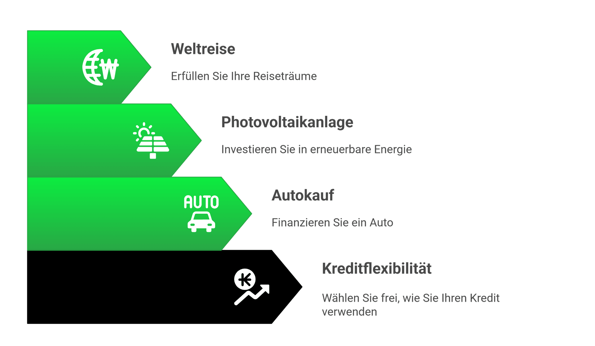 Ein 50.000 Euro Kredit ist ein Ratenkredit mit einem Nettodarlehensbetrag von 50.000 Euro, der sich für größere finanzielle Vorhaben wie eine Immobilienrenovierung, die Umschuldung mehrerer Kredite oder die Finanzierung eines Fahrzeugs eignet. Die Rückzahlung erfolgt in monatlich festen Raten über eine individuell wählbare Laufzeit – häufig zwischen 12 und 120 Monaten. Die Konditionen hängen von Ihrer Bonität, dem Verwendungszweck und der gewählten Laufzeit ab.