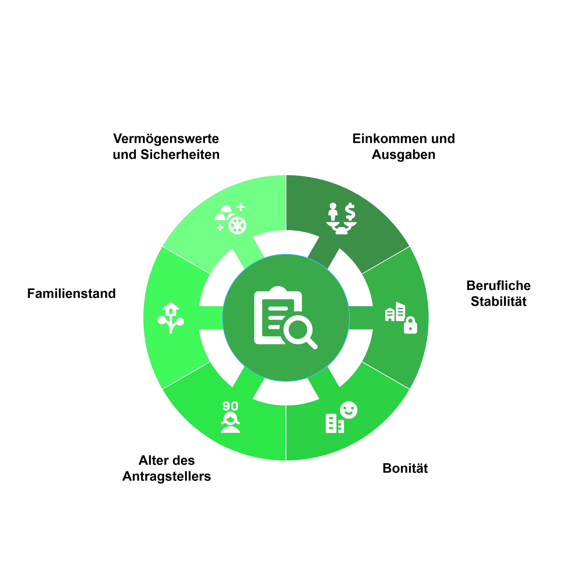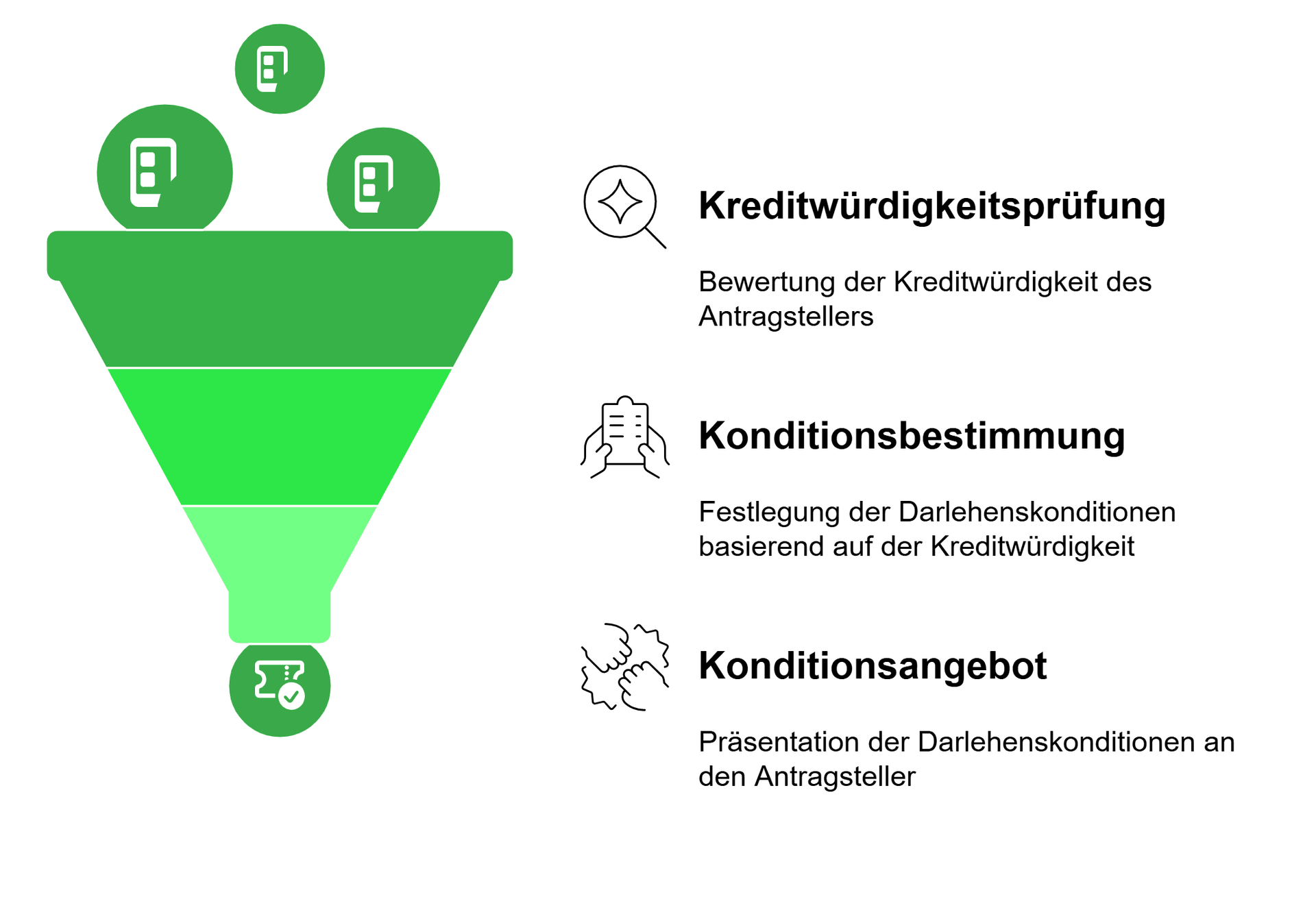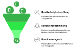 Dazu erhebt das Institut zahlreiche Informationen und bewertet sie anhand offizieller Vorgaben und interner Modelle. Ziel ist es, das Risiko dieses Kredits einzuschätzen und darauf basierend einen passenden Zinssatz und andere Faktoren festzulegen.
