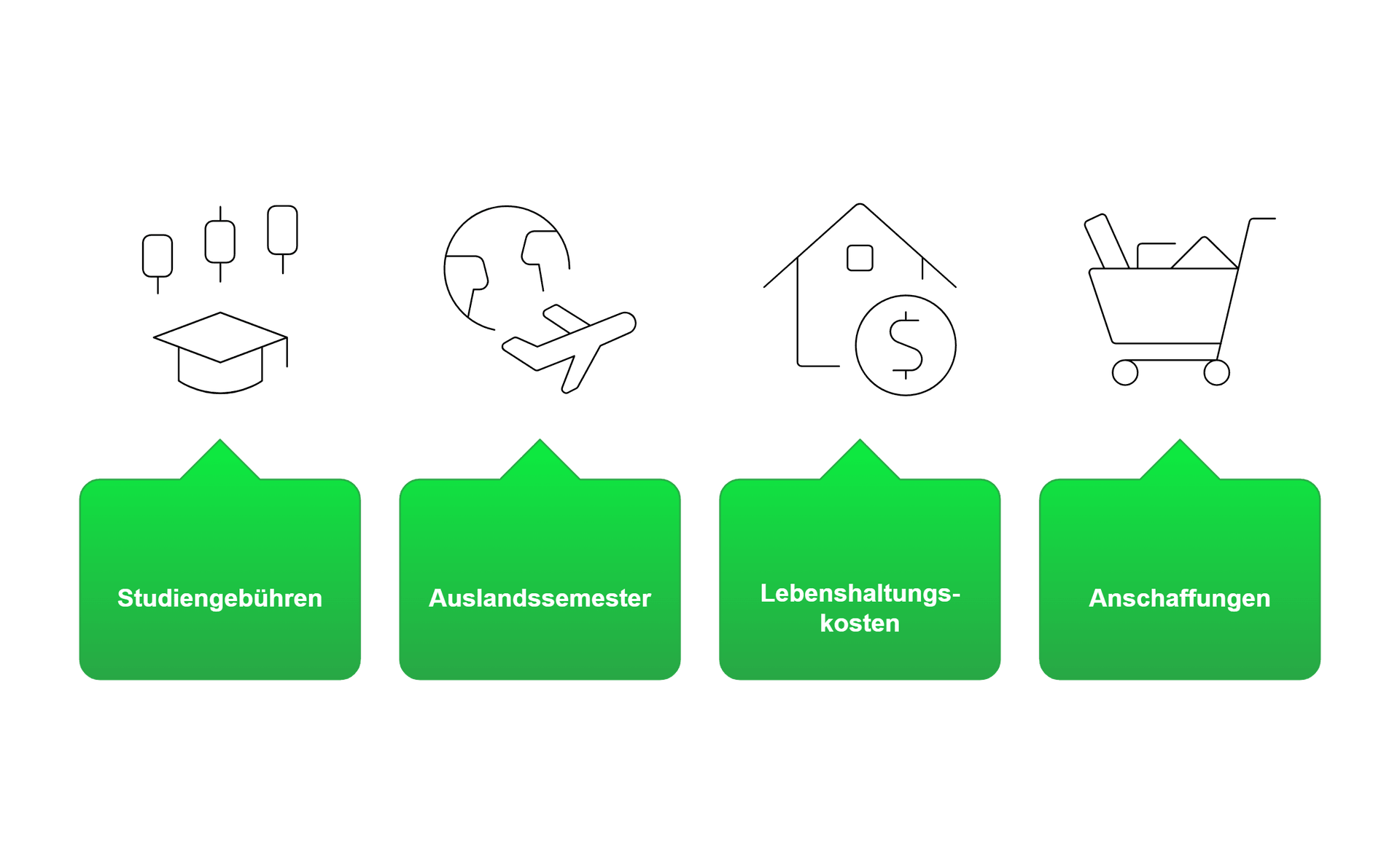 Das Beispiel zeigt: Schon mit moderaten Monatsraten lassen sich Studienausgaben finanzieren, ohne das Budget zu überlasten.