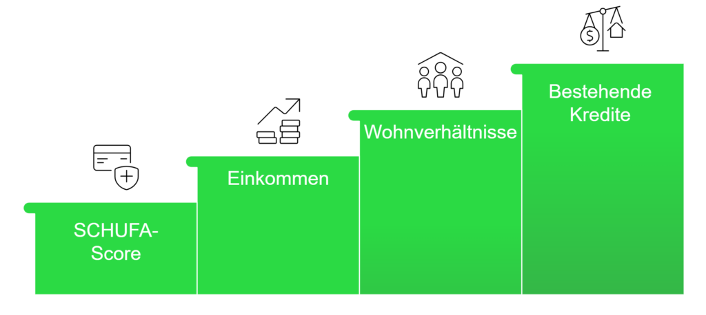 Die Bonitätsprüfung bewertet, wie zuverlässig Sie finanziellen Verpflichtungen nachkommen. Das dient als Schutz für Sie und die Bank. So wird Ihnen nur ein Kreditrahmen zugesprochen, der zu Ihrer finanziellen Situation passt.