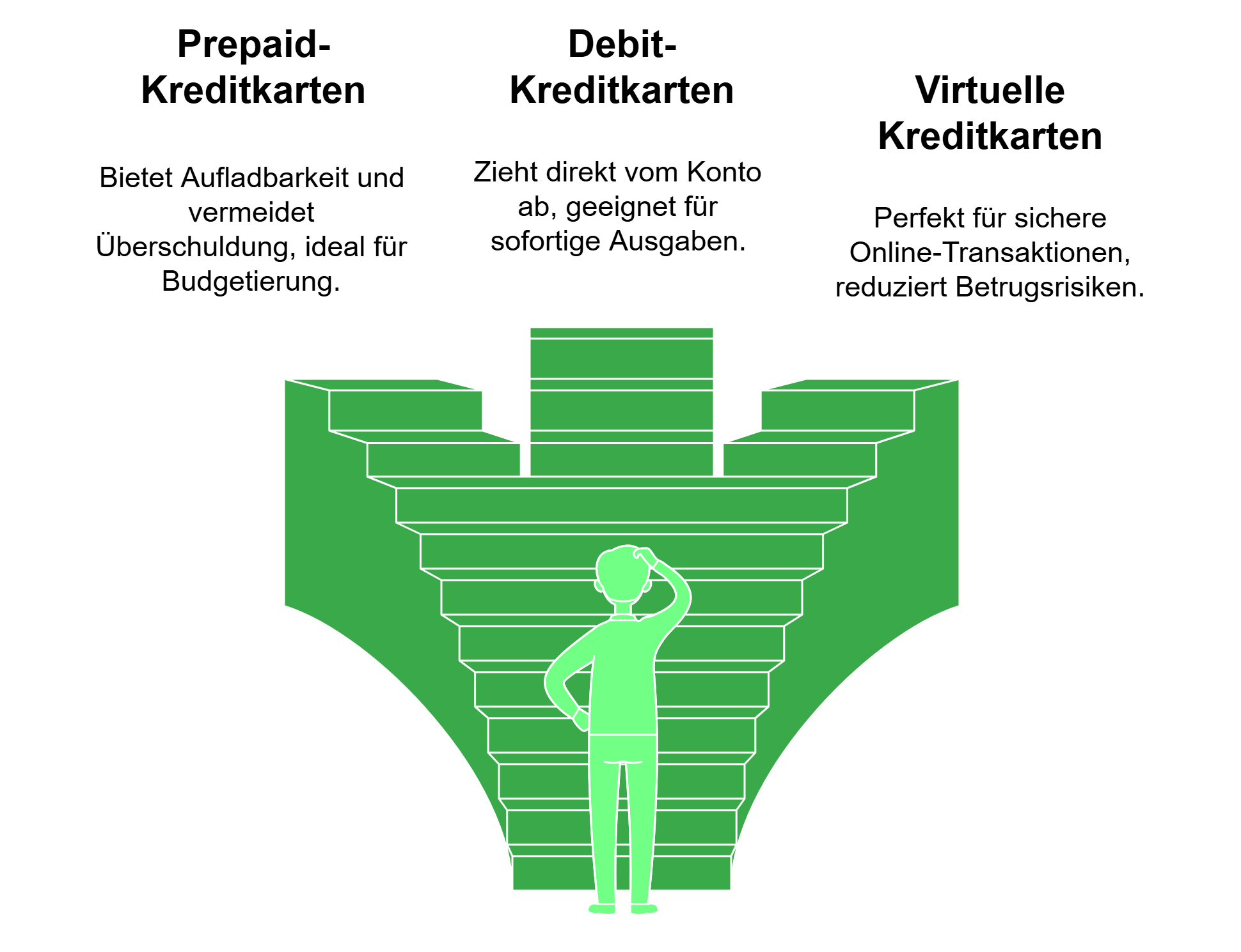 • Prepaid- und virtuelle Karten funktionieren ohne Bonitätsprüfung und sind daher für viele Nutzer zugänglich.