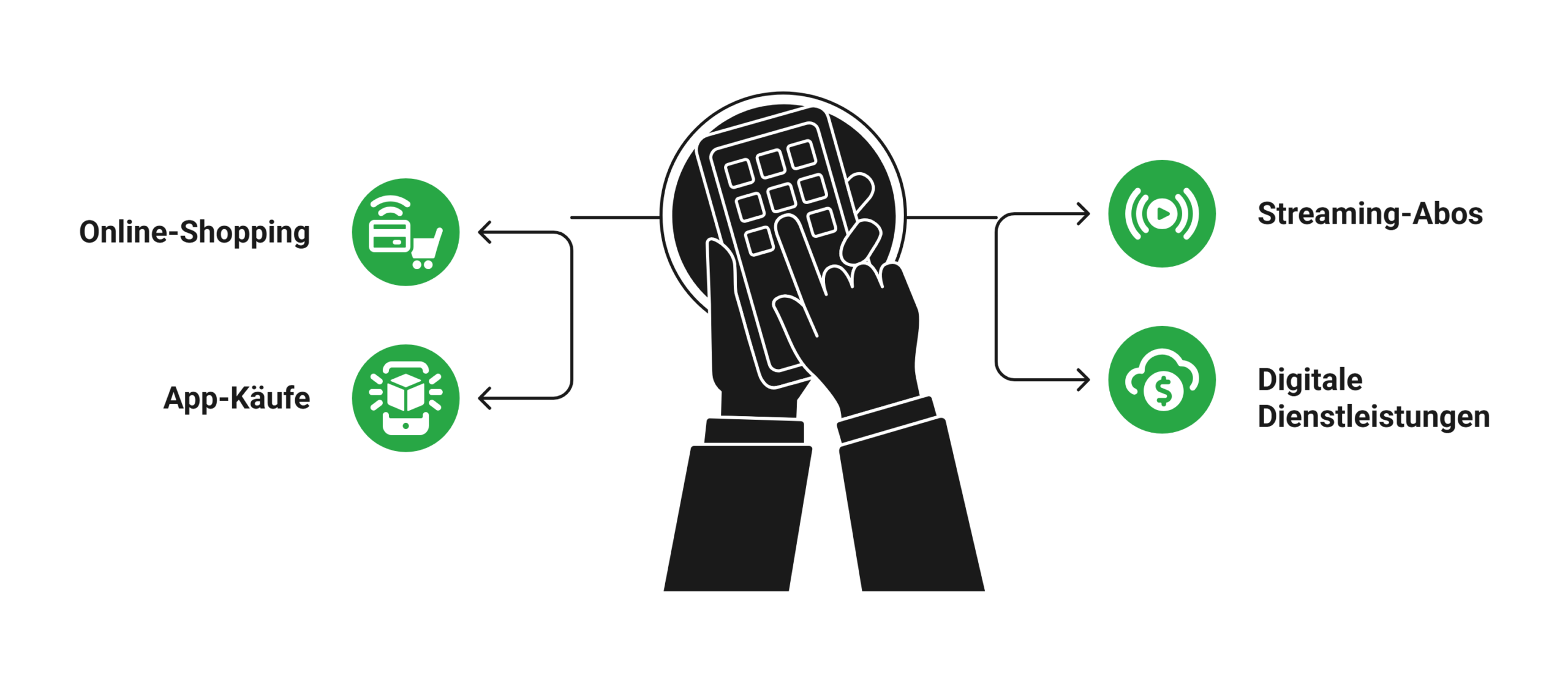 • Mit der Karte bezahlen – online, im Geschäft oder unterwegs