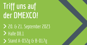 triff uns auf der DMEXCO in Köln am 20. + 21.09.2023. Du hast noch kein Ticket? Wir verlosen 5 Besuchertickets und freuen uns auf Deinen Besuch an unserem Messestand A-032g & B-017g in Halle 08.1.