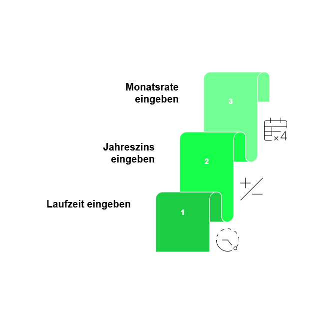 Passen Sie gewünschte Laufzeit oder Kreditbetrag an, um mögliche Alternativen zu simulieren.